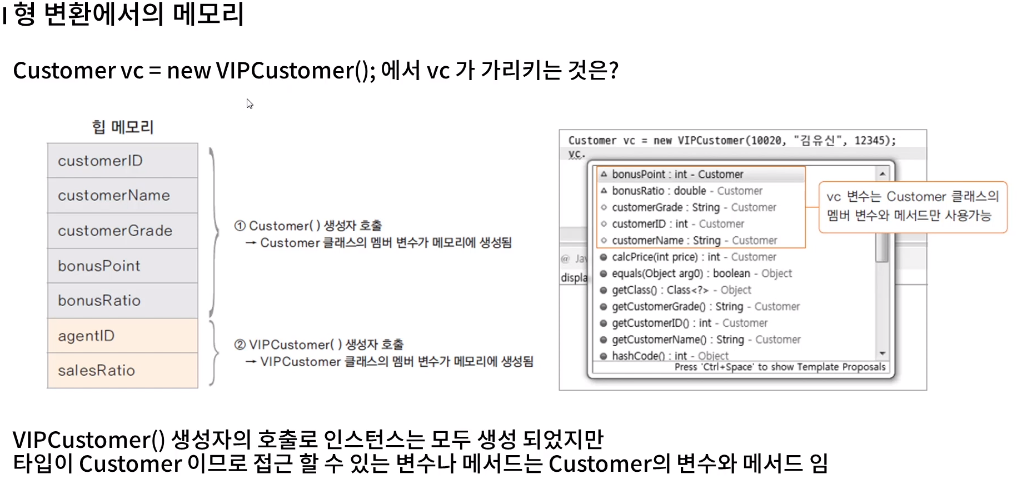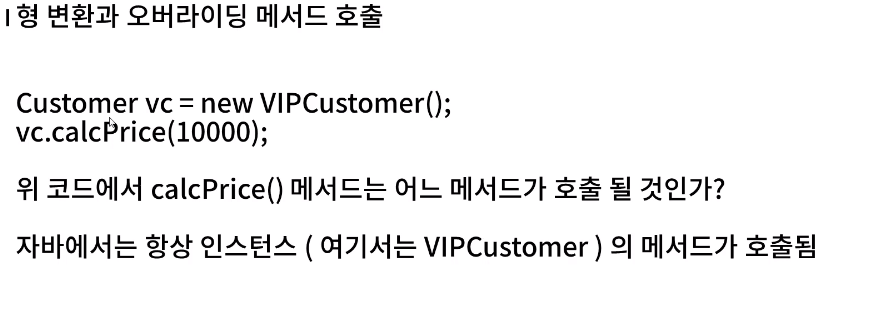 자바에서는 항상 인스턴스(VIPCustomer) 의 메서드가 호출된다.
