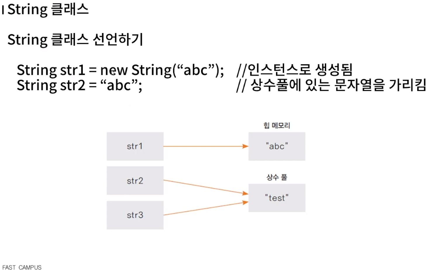 System.out.println(str3 == str4);//true -> 상수 풀 저장