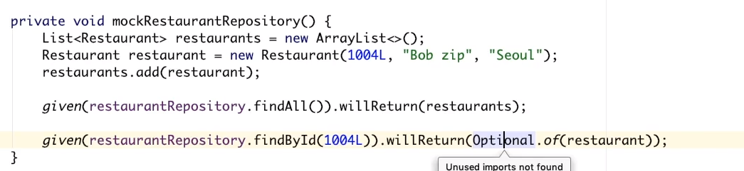 Optional.of(restaurant) -> option<Restaurant> 를 위한 test 작업