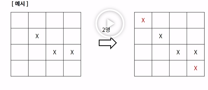 - 모든 행과 모든 열에 한 명 이상의 경비원이 있어야한다.