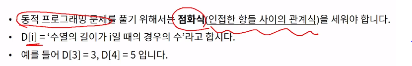 동적 프로그래밍 특징: 한번 구한 값은 다시 구하지 않는다. 점화식을 잘 짜야 풀 수 있는 문제