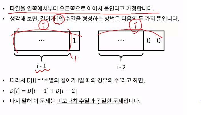 우리의 목표는 N이 주어졌을 때 지원이가 만들 수 있는 모든 가짓수를 세는 것이다. 단 타일들은 무한히 많은 것으로 가정하자.