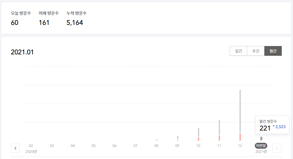 블로깅을 열심히 하고 있다. 블로깅도 나름의 스킬이 있는 것 같다. 12월 기준 2700명이 방문하는 기염을 토하고 꾸준한 성장세에 기분이 좋다.