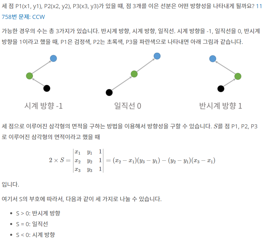 P1, P2, P3를 순서대로 이은 선분이 반시계 방향을 나타내면 1, 시계 방향이면 -1, 일직선이면 0을 출력한다.'