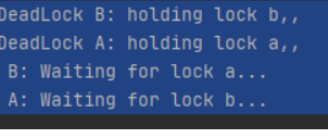 - 데드락이란, 둘 이상의 스레드가 lock을 획득하기 위해 대기하고 있는데, 이 lock 을 잡고 있는 스레드들도 똑같이 다른 lock을 기다리면서 서로 block을 기다리면서 서로 block상태에 놓이는 것을 말한다. 데드락은 다수의 쓰레드가 같은 lock 을 동시에, 다른 명령에 의해 획득하려할 때 발생한다.