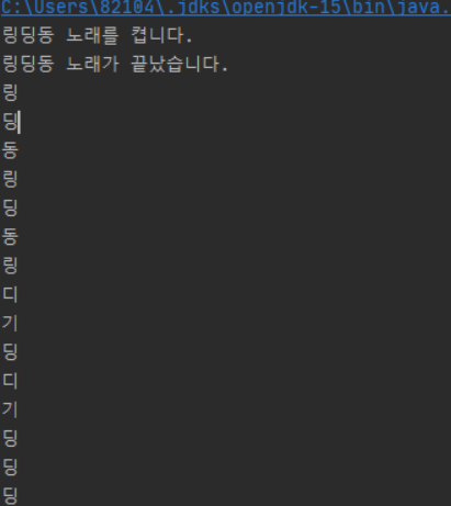 "링딩동 노래를 켭니다"➡"링딩동링딩동링디기딩디기딩딩딩"➡"링딩동 노래가 끝났습니다." 를 하기 위해서는 player 스레드가 종료될때까지 기다린 후 내용을 출력하게 해야한다.