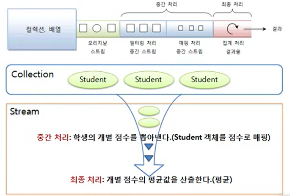 스트림은 중간 처리와 최종 처리를 할 수 있다.