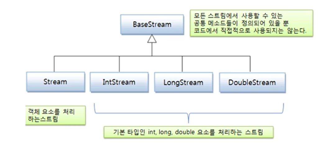 - 스트림이 제공하는 대부분의 요소 처리 메소드는 함수적 인터페이스 매개타입을 가진다.