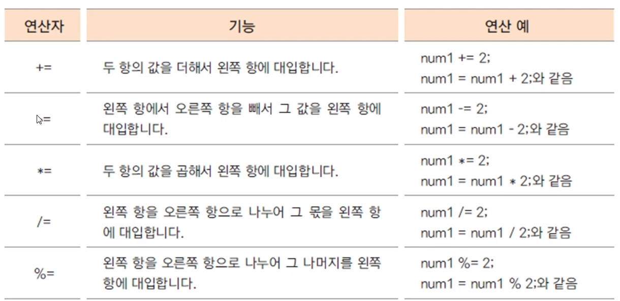 | 복합 대입 연산자