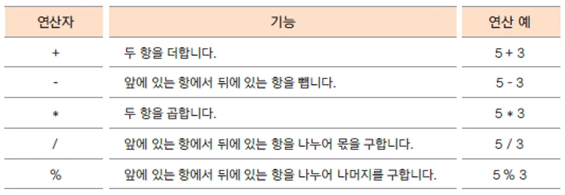 | 산술 연산자