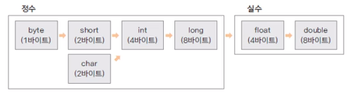 서로다른 자료형의 값이 대입되는 경우, 형변환이 일어남.