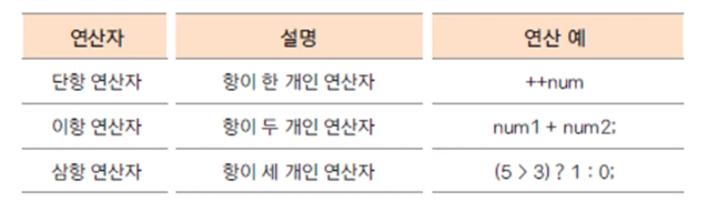 연산자: 항을 이용하여 연산하는 기호