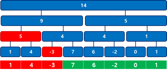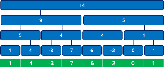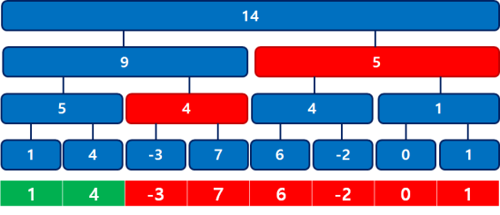 세그먼트트리에 수정이 있을 수 있음을 감안할 때, 구간합을 구함에 있어 O(logN)이라는 최적화된 결과를 보여준다.