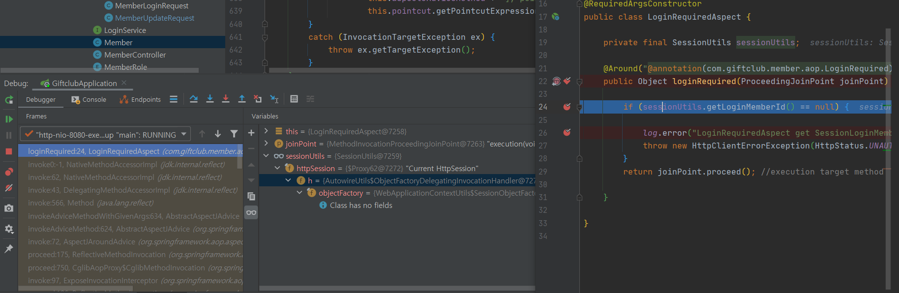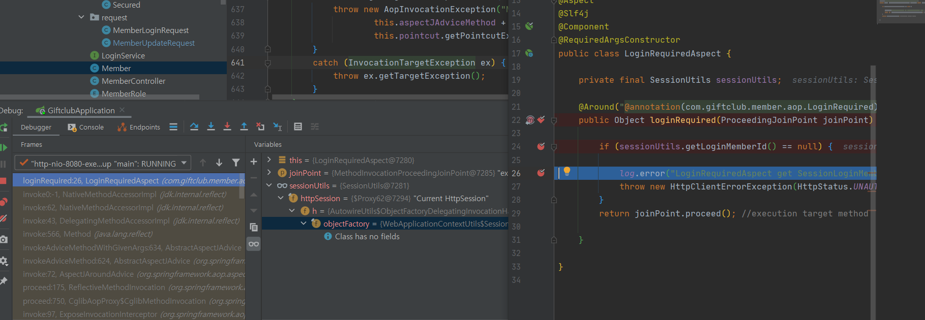 이번에 @LoginRequired 를 구현하면서 계속된 에러의 원인(로그에도 안찍히고 구동이 안됨)은 .aj 확장자를 이용해 만들어서 스프링 빈으로 등록되지 않았기 때문이였다.