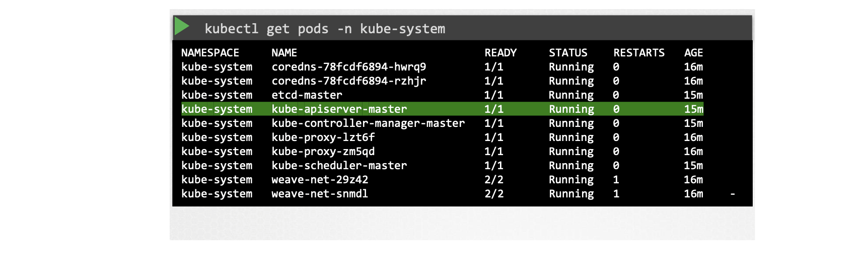 # .kubeadme로 클러스터를 설정한 경우, kube-api server를 kube-system namespace의 마스터 노드에 pod 로 배포한다.