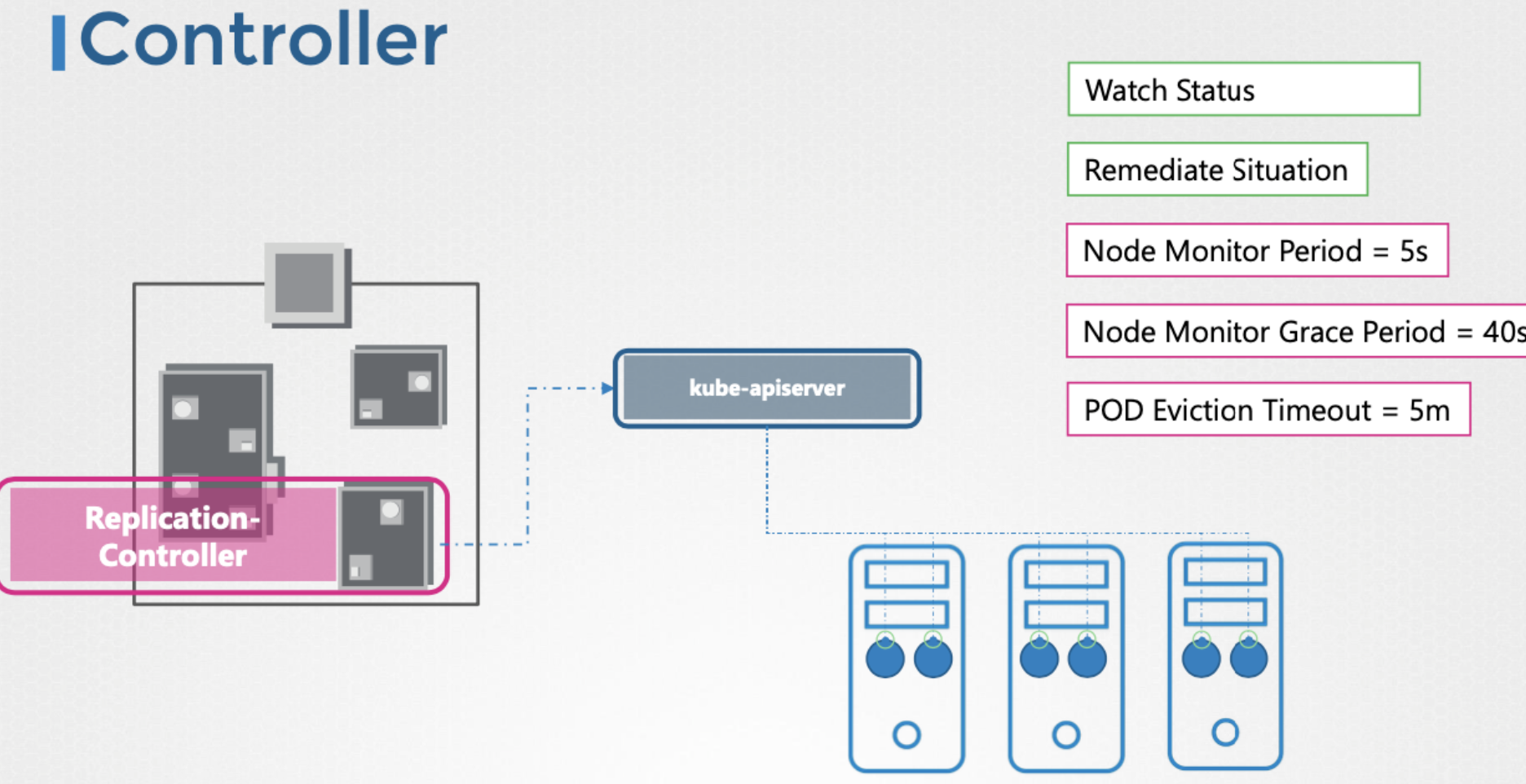 - 노드 컨트롤러도 kube-controller-manager 의 기본 설정 중의 일부임을 기억하자.