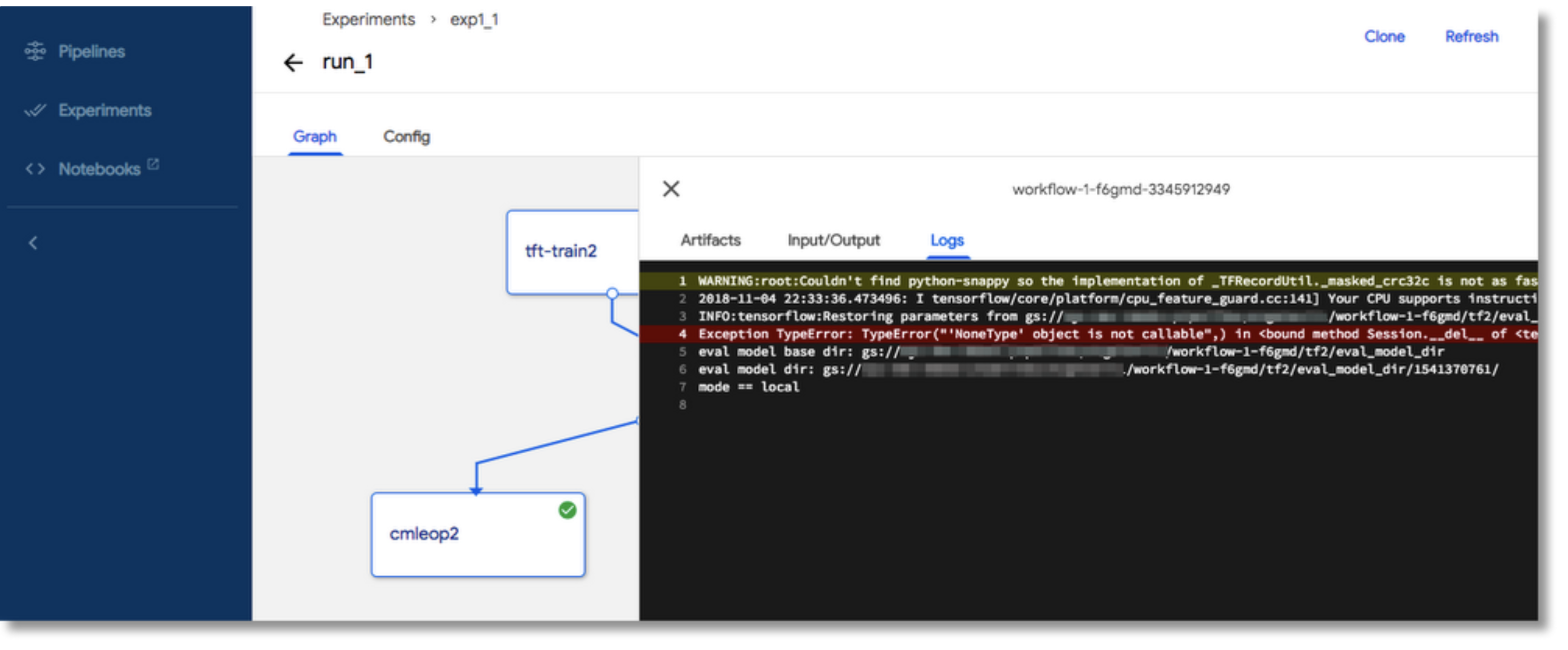실험 실행이 진행 중이거나 완료된 후에 파이프라인 단계에 대해 동적으로 생성된 그래프, 구성 매개변수 및 로그를 검사할 수 있습니다.