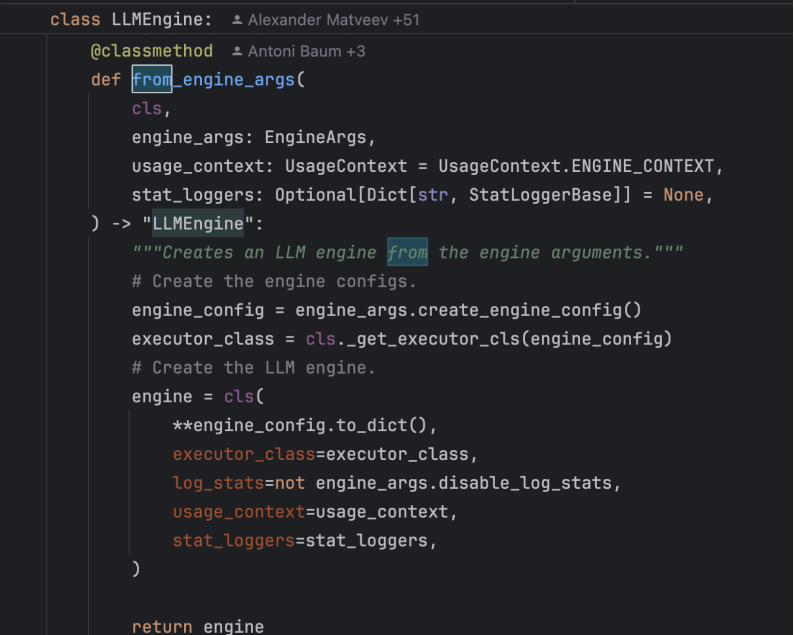 여기서 보이는 LLMEngine.from_engine_args 가 엔진을 구동하는 함수입니다.
