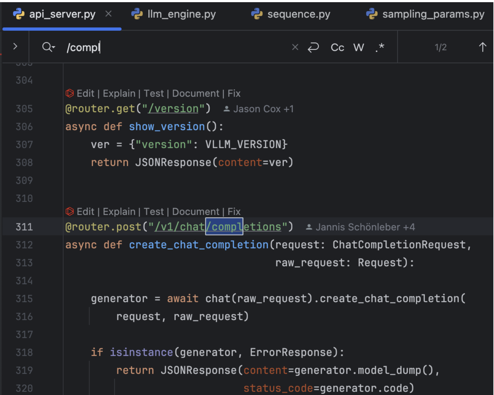 vllm/entrypoints/api_server.py에서 확인할 수 있습니다.