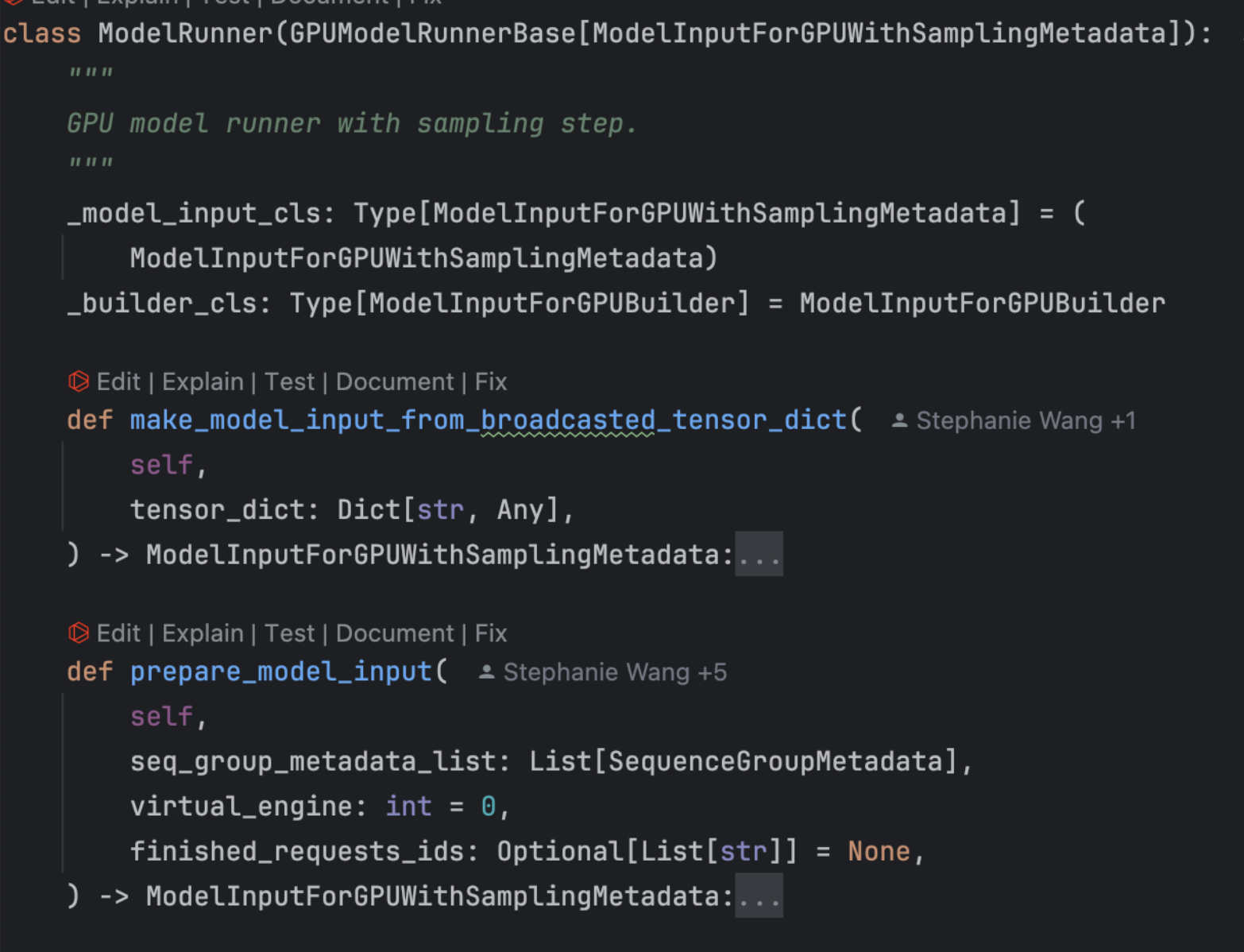 각 worker는 하나의 model runner 객체를 가지며, 이는 모델을 로드하고 실행하는 역할을 담당합니다. 모델 실행의 많은 로직이 여기에 포함되어 있으며, 입력 텐서를 준비하고 CUDA 그래프를 캡처하는 작업을 수행합니다.