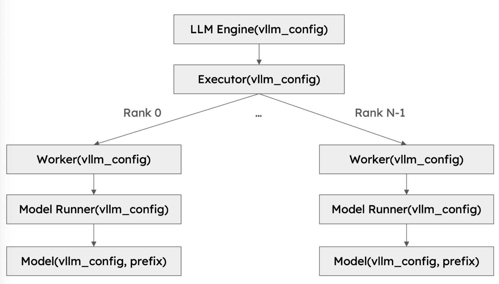The following figure shows the class hierarchy of vLLM: