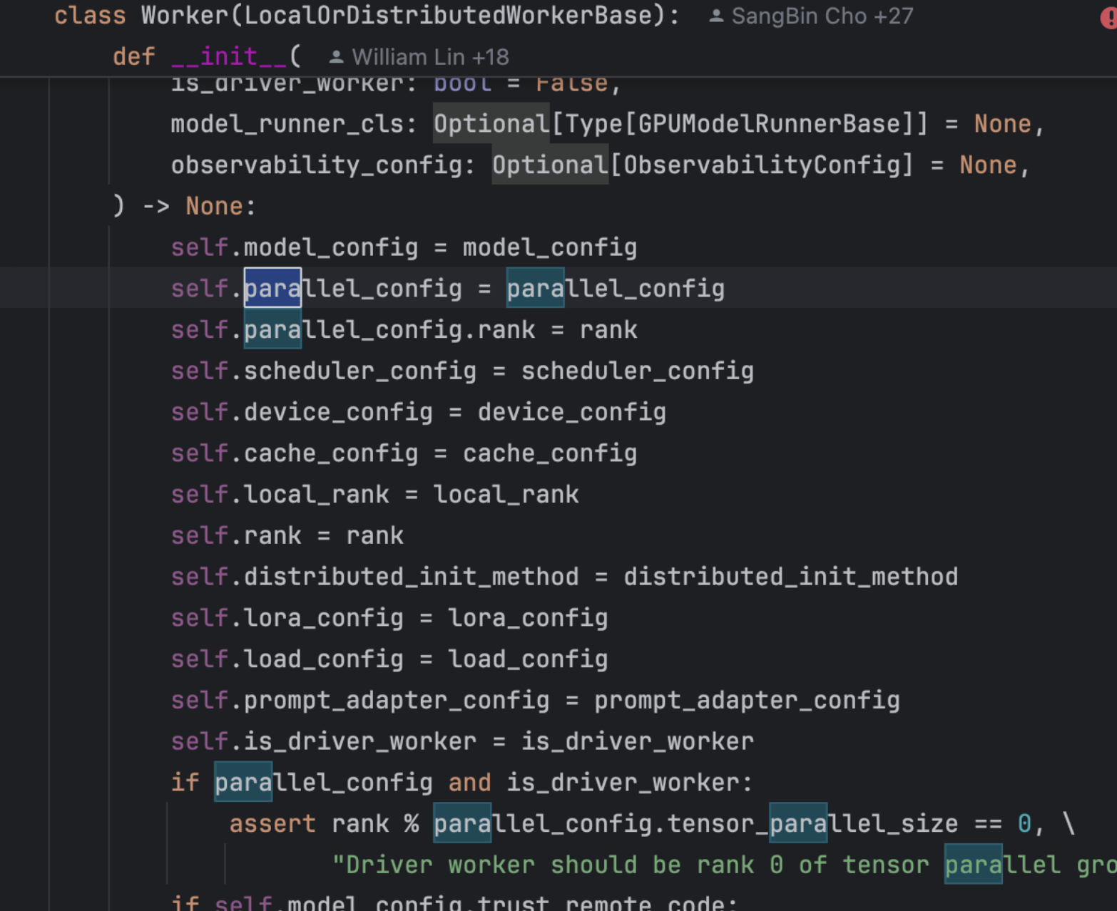 완전한 config 객체인 VllmConfig는 모든 vLLM 클래스 간에 공유되는 엔진 수준의 글로벌 상태로 간주될 수 있습니다.