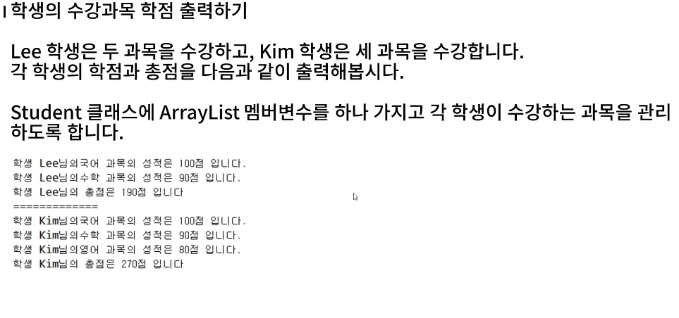 System.out.println(studentName +"학생의 " +subject.getName()+"과목의 성적은 "+subject.getScore()+"점 입니다.");